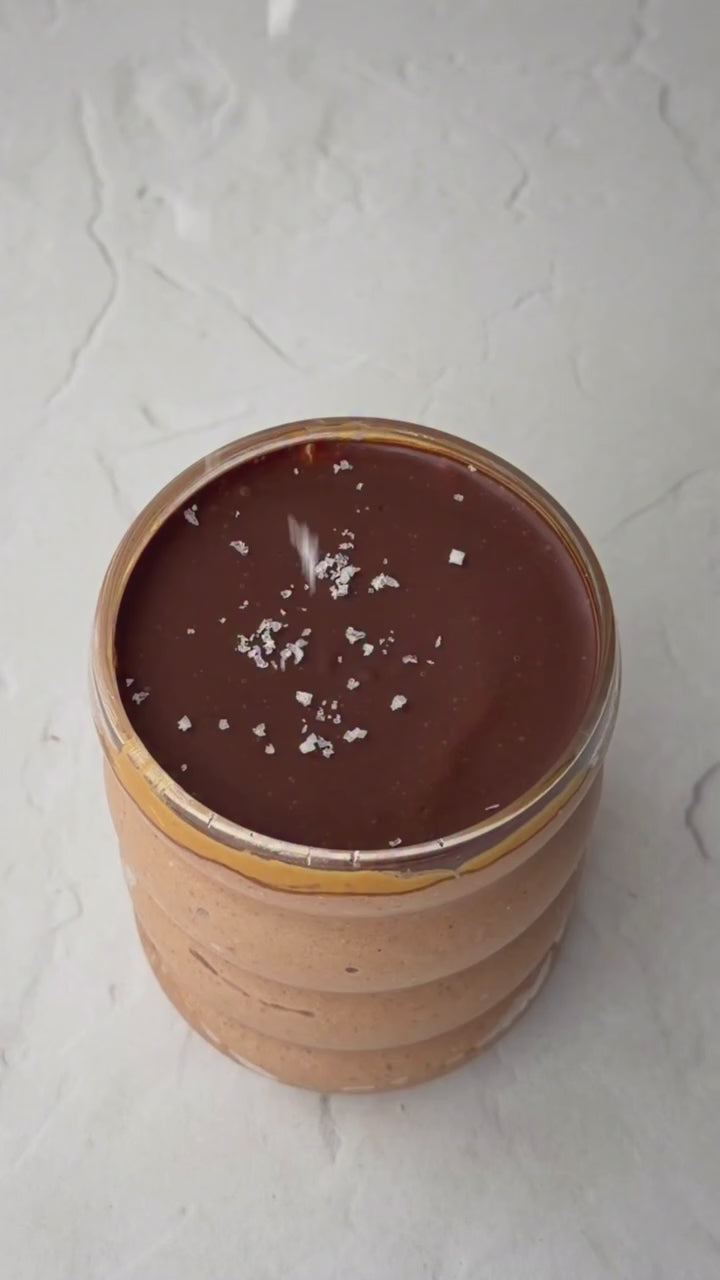 Transfer the mix into jars or bowls — leave a little room at the top for the choc layer!