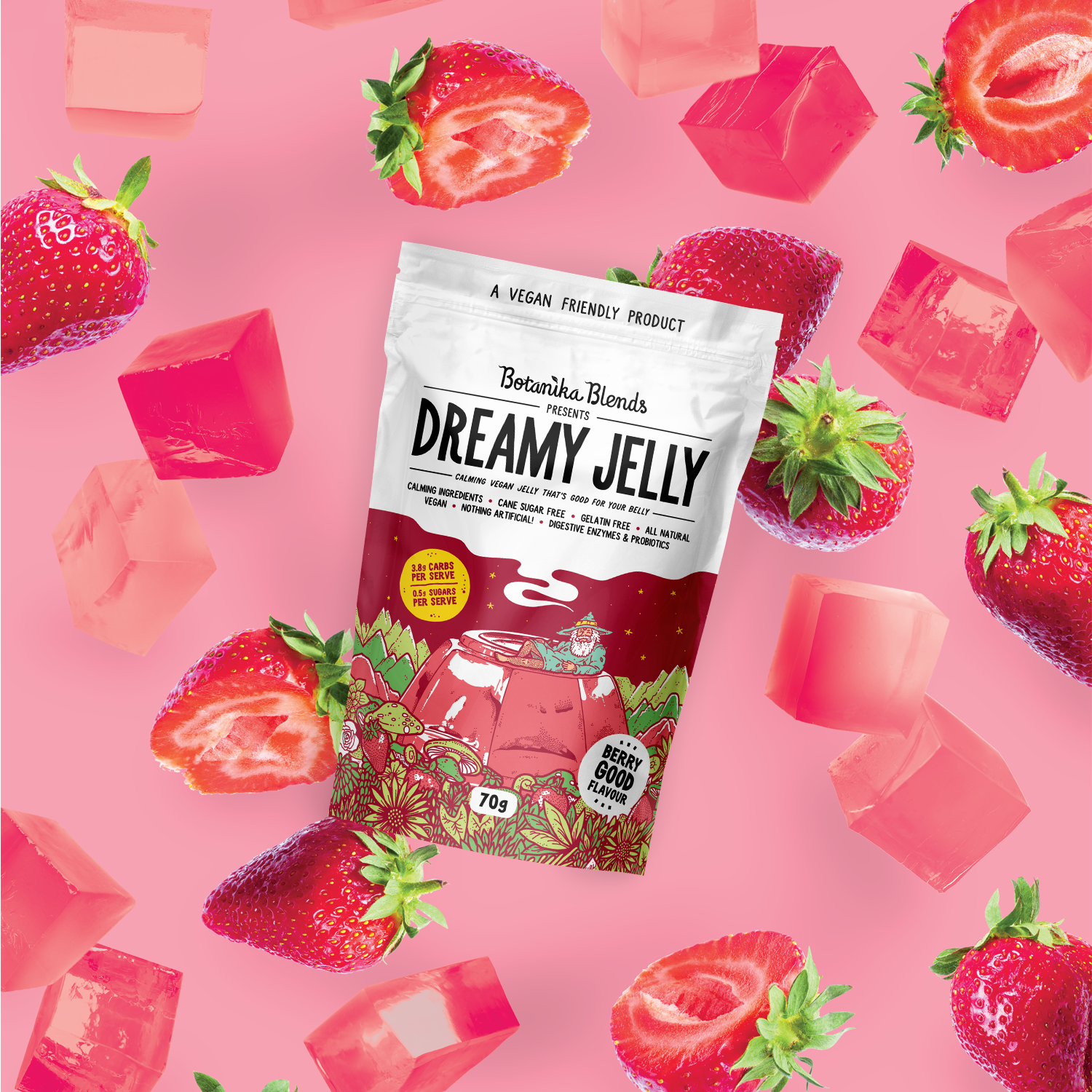 A calming vegan jelly in a sweet strawberry flavour, made to support sleep and mood. Infused with amino acids, magnesium, digestive enzymes, and probiotics - this gut-friendly treat is your new night-time ritual for relaxation.